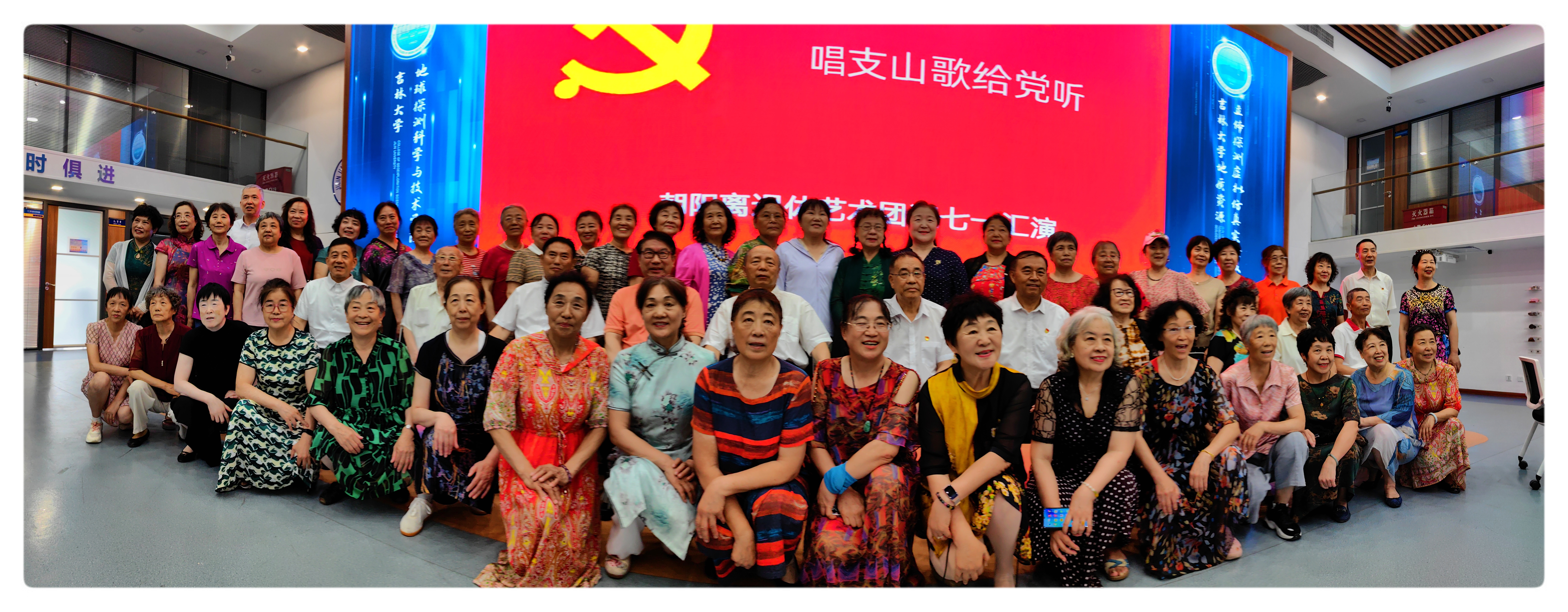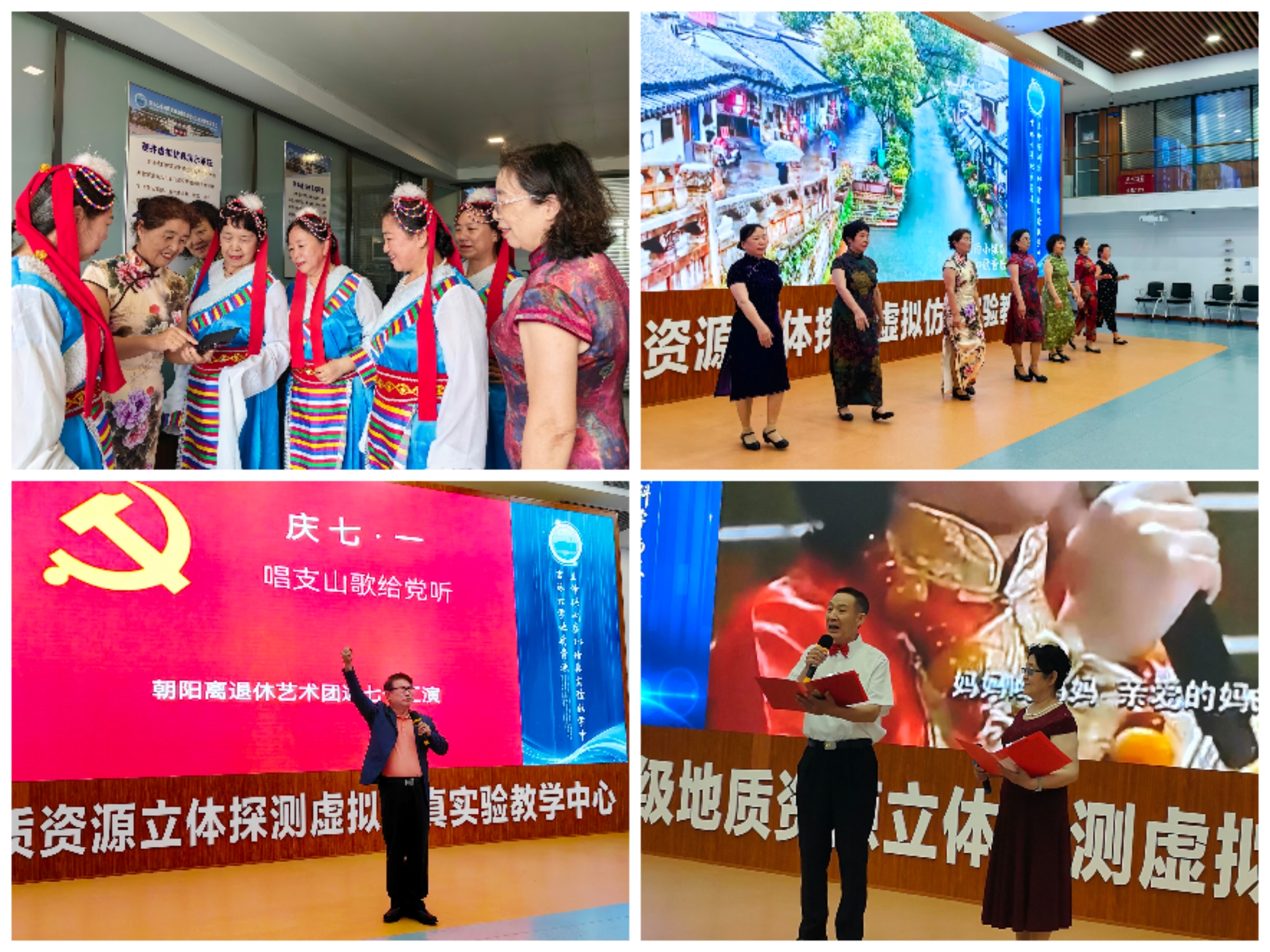 为庆祝中国共产党成立104周年,传承红色基因,凝聚奋进力量,7月2日上午,朝阳离退休艺术团在地质资源立体探测虚拟仿真实验教学中心举办庆“七一,唱支山歌给党听” 主题文艺汇演,60余位退休老同志以歌舞、朗诵、戏曲等多种艺术形式,深情讴歌党的光辉历程,共庆党的生日。