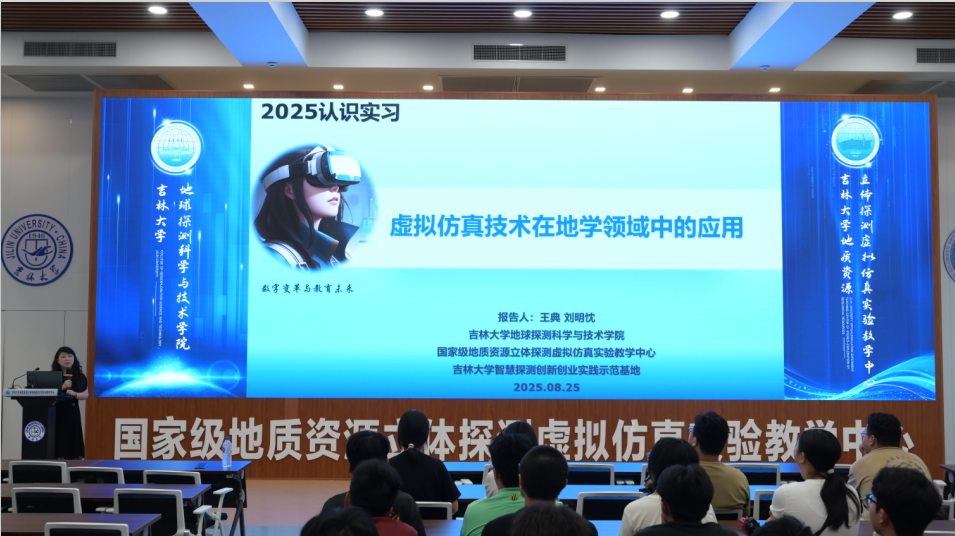 2025年8月25日,地球探测科学与技术学院地球化学专业认识实习在地质资源立体探测虚拟仿真实验教学中心顺利开展。中心副主任王典教授做了相关实习报告并带队参观中心实验室。